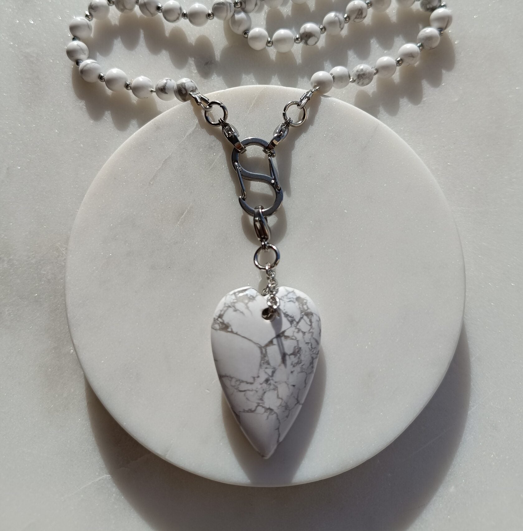 Crafted from natural magnesite and stainless steel, this transformer necklace offers unmatched versatility, designed to elevate both casual and formal looks. With a detachable heart-shaped magnesite pendant, you can style this piece in a variety of ways, making it a standout in your jewelry collection.