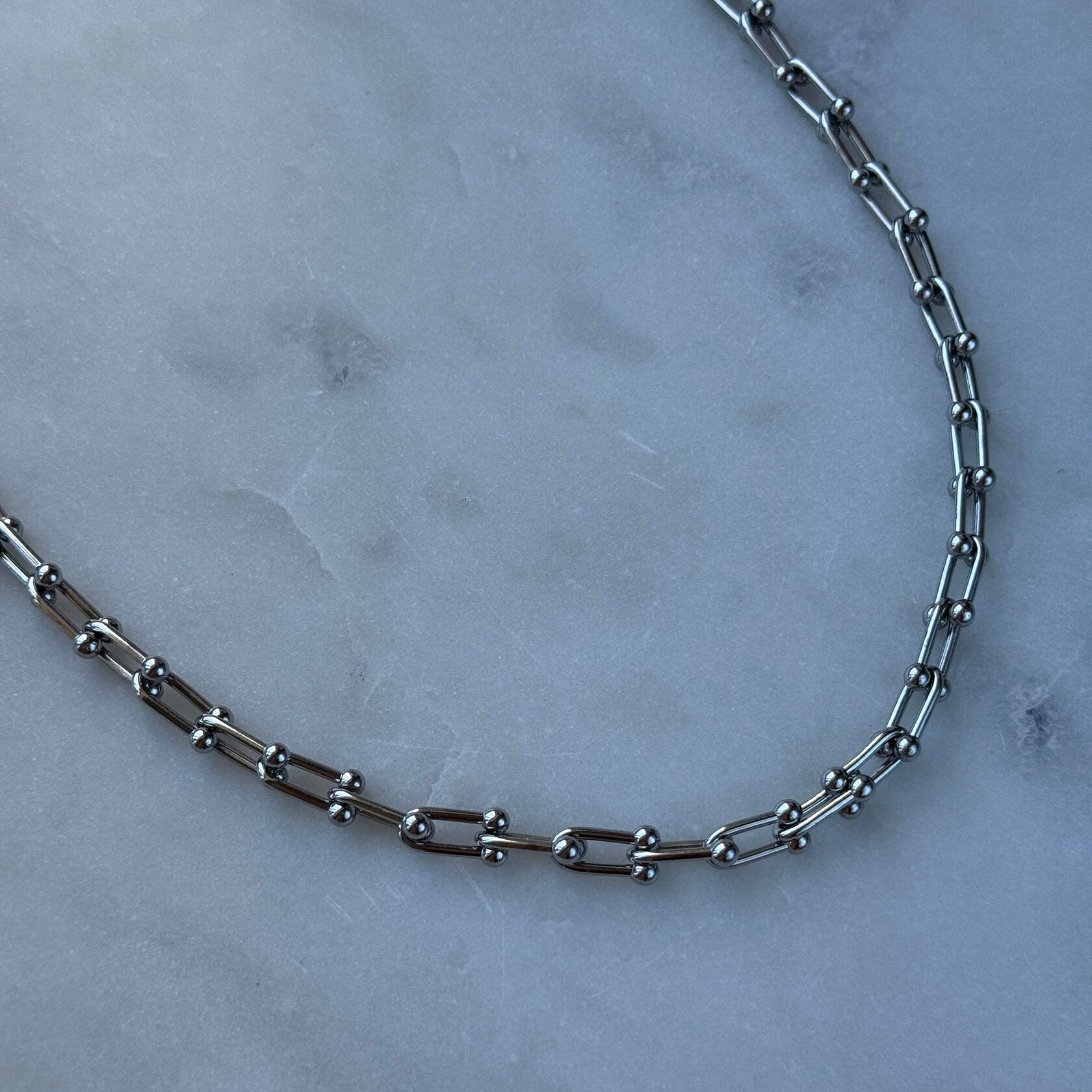 A refined chain inspired by Tiffany-style design, crafted from stainless steel in a silver tone. Length: 45 cm with two clasps. You can add any number of clasp charms to create your own unique jewelry design.